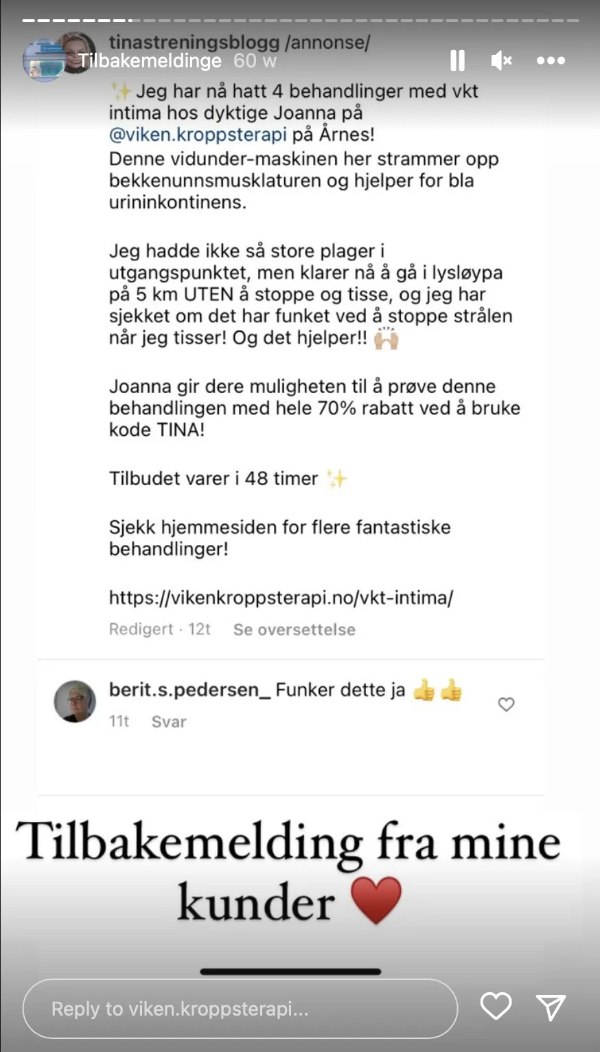 Klinikken vår har mange gode anmeldelser hvor kundene forteller om deres opplevelse hos oss på Viken Kroppsterapi