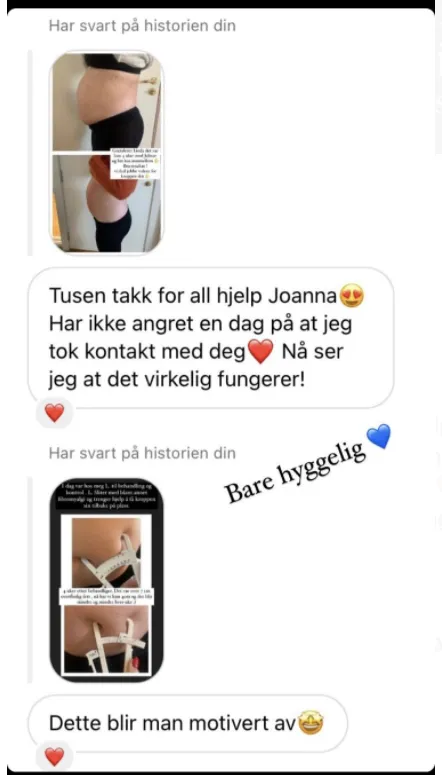 Emsculpt viste seg å gi rask effekt. Allerede etter 1. behandling kjente jeg at området ble betraktelig avslappet. Etter 4 behandlinger var jeg såpass bra at trening igjen kunne holde resultatet i sjakk.